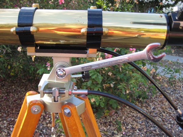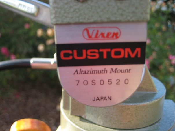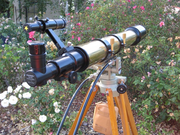 A Steampunk Telescope? A Vixen/Celestron 80 mm f/11.4 doublet refractor, on a lightweight Vixen altazimuth mounting.