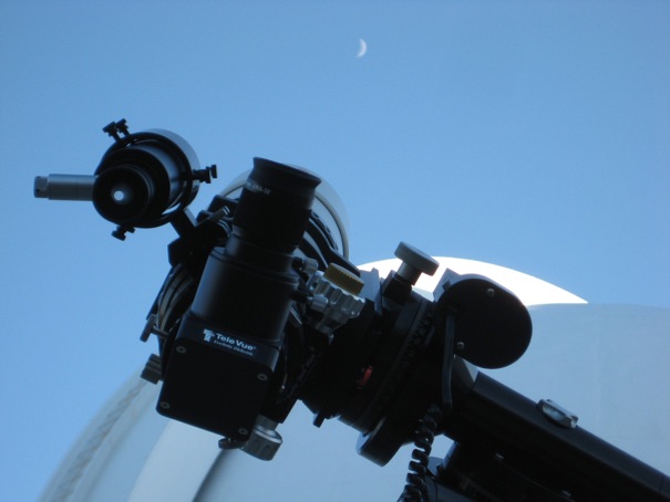 (Viewing the crescent Moon over the Lick 36-inch refractor dome.)