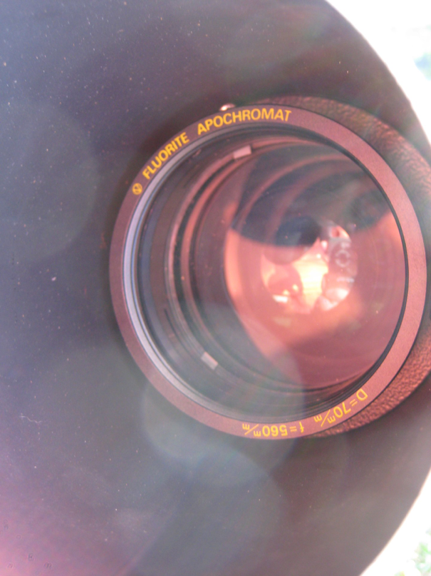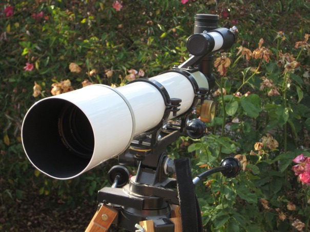 Vixen 70 mm f/8 fluorite doublet refractor, on a lightweight Vixen/Celestron altazimuth mounting.
